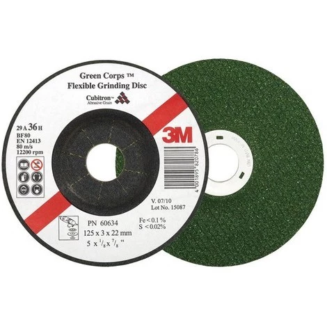 Disque à ébarber Green Corps pour l’usinage de l’acier inoxydable Ø x épaisseur : 115 x 3,0 mm, Modèle Coudé, Vitesse maxi. 13300 tr/mn – Grain abrasif céramique Cubitron (TM) – Puissance de meulage très élevée et très bonne tenue de coupe – Alésage standard de 22,23 mm – Pour l’usinage de l’acier inoxydable, de l’aluminium et des métaux non-ferreux Livraison : avec 2 plateaux. Remarque : à utiliser uniquement avec le disque d’appui référence 42 30907 150.