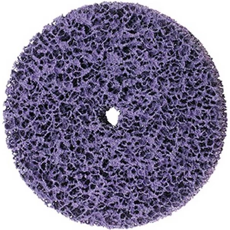 Disque de décapage (arêtes stables) XT-DC/CG-DC Degré de finesse : extra-grossier, Ø 150 mm, Vitesse maxi. 4000 tr/mn, Couleur : mauve – Fibres non-tissées – Alésage standard de 13 mm – Adapté au dérouillage, au décapage, au nettoyage des cordons de soudure – Élimination des encrassements importants et des revêtements de surface – Utilisation avec mandrin de serrage sur meuleuse droite ou axe pliant