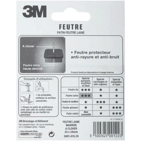 - Feutre laine haute densité à clouer.