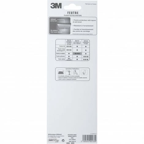Patins en feutre à bords droits. Conçu en bi-matière très haute densité avec un adhésif extra fort. Permettent de réduire le bruit de 30 décibels maximum.