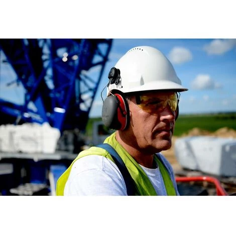 Le casque anti-bruit 3M PELTOR X3 combine une excellente protection et un design attrayant. Le modèle X3A avec serre-tête et coquilles rouge et noir offre une atténuation de SNR = 32 dB. Il s’adapte à la plupart des casques de chantier et garantit un excellent confort de port. Son design mince à double arceau garantit un positionnement parfait et excellent confort de port. Les anneaux d’étanchéité souples et larges réduisent la pression sur les oreilles et offrent un grand confort, même en cas d’utilisation sur une longue durée. Ce casque est très robuste et résiste à l’humidité et à l’usure. L’espace libre à l’intérieur des coquilles évite l’accumulation de la chaleur et de la transpiration. Les joints d’étanchéité innovants à l’intérieur des coquilles assurent une atténuation optimale des bruits. Le casque anti-bruit PELTOR X3 avec fixation pour casque de chantier est équipé de coquilles larges. Il peut être utilisé dans les environnements bruyants comme la métallurgie, l’industrie lourde, l’industrie automobile, le bâtiment, l’industrie textile, l’imprimerie, l’industrie du bois. Des kits d’hygiène adaptés garantissent l’hygiène et le bon fonctionnement du casque anti-bruit.