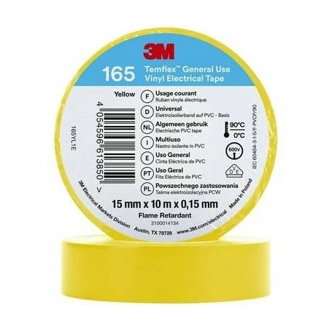 3M Temflex? 165 165YL1E Ruban isolant Temflex? 165 jaune (L x l) 10 m x 15 mm 1 pc(s)