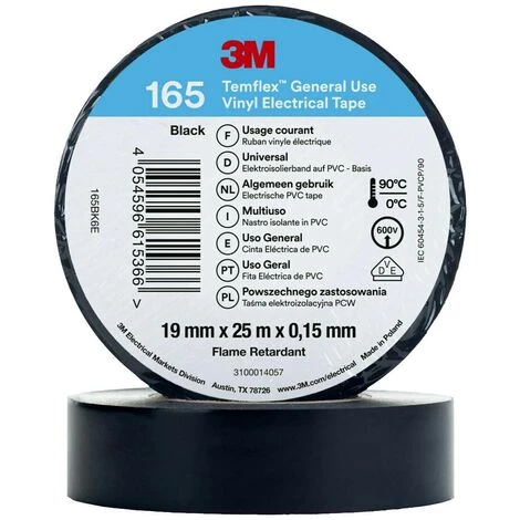Ruban isolant en vinyle Teflex TM 3M 165, noir, 19 mm x 25 M.