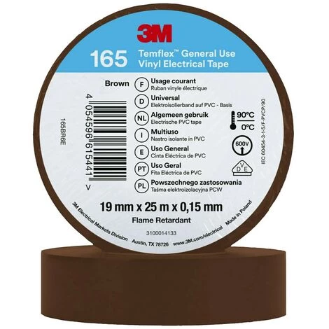 Ruban isolant en vinyle Teflex TM 3M 165, marron, 19 mm x 25 M.