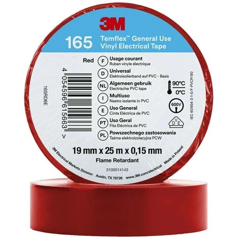 Ruban isolant en vinyle Teflex TM 3M 165, rouge, 19 mm x 25 M.