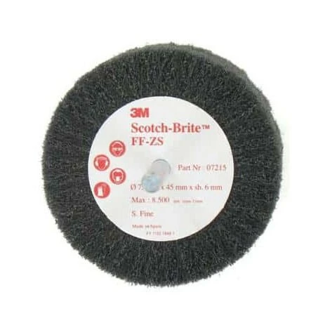 Brosse 3M scotch-brite FF-ZS fine diamètre 75 mm.La structure flexible des brosses scotche-brite permet une grande souplesse d’utilisation et une agressivité contrôlée pour toutes les opérations de finition, tout particulièrement sur surface difficiles d’accès. Les différentes nappes non tissées scotch-brite ne déforment pas la géométrie des pièces travaillées et procurent un fini uniforme et reproductible sur tous types de métaux. La gamme de densités brosse imprégnées ou non et de grains proposée, permet l’obtention de tous les niveaux de finition.