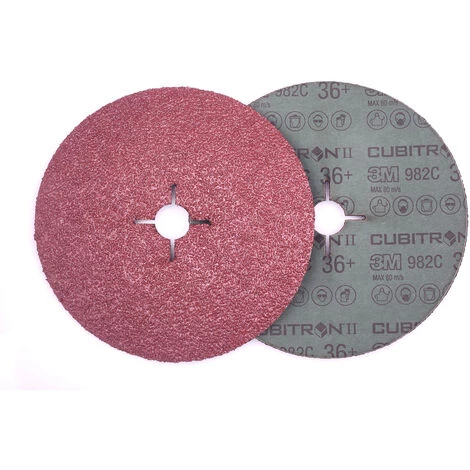 Disque fibre Cubitron™ II 982C 3M™. Le disque en fibre 3M™ Cubitron II™ 982C contient un grain formé avec précision de 3M, conçu pour offrir jusqu’à deux fois la vitesse de coupe, surpassant d’autres disques conventionnels en termes de performances et de longévité. Le disque en fibre Cubitron™ II est conçu pour optimiser l’efficacité de coupe, réduisant la fatigue de l’opérateur et la pression de meulage. Performances de coupe remarquables. Le disque 982C contient un grain profilé de précision de 3M, qui se forme en grains triangulaires et se positionne de manière électrostatique sur le support. Les grains agissent alors comme des outils de coupe individuels, réduisant la décoloration du métal avec une efficacité extrême. Le disque s’use de façon homogène et s’affûte automatiquement de manière continue jusqu’à la rupture des points. Cela réduit l’accumulation de chaleur due à la friction et prolonge la durée de vie du disque. Le 3M™ Cubitron II™ 982C surpasse les disques céramique traditionnels. Cette roue en fibre est bien adaptée au chanfreinage de bords, aux rainures d’usinage, au retrait de soudures en acier et bien plus. Caractéristiques et avantages. La technologie de grain de précision de 3M coupe exceptionnellement vite avec moins de pression, dépassant tous les disques abrasifs industriels en céramique conventionnels Peut durer deux fois plus longtemps que les disques conventionnels Durée de vie du disque beaucoup plus longue, pour terminer plus de pièces par disque avec moins de changements de disque nécessaires Avec un grain en céramique de forme triangulaire qui s’use uniformément, il fonctionne sans chauffer et optimise la fragmentation du minéral Durable et résistant à la déchirure avec un support en fibres raides et un liant en résine solide pour le meulage et le biseautage de soudure à haute pression Minimise la fatigue de l’opérateur avec le grain profilé de précision de 3M réduisant la pression de meulage Il est recommandé d’utiliser une plaque de soutien avec ce disque. Applications types. Ces disques en fibre à utilisation intensive sont parfaits pour le retrait de soudure, le meulage et le lissage des petites et grandes surfaces en métal. Cela peut se produire dans les secteurs tels que les fermes et la construction, l’automobile, la construction navale et la fabrication du métal. FAQ. Quelle est la différence entre les disques en fibre 3M™ Cubitron II™ et les disques en fibre™ de 3M avec un grain profilé de précision ?. Les disques en fibre 3M™ Cubitron II™ offrent une coupe rapide et une longue durée de vie, ce qui les rend parfaits pour un grand nombre d’applications de production. Ces disques peuvent-ils être utilisés sur le bois ?. Non, ils ne sont pas recommandés pour une utilisation sur le bois, seulement sur les métaux.