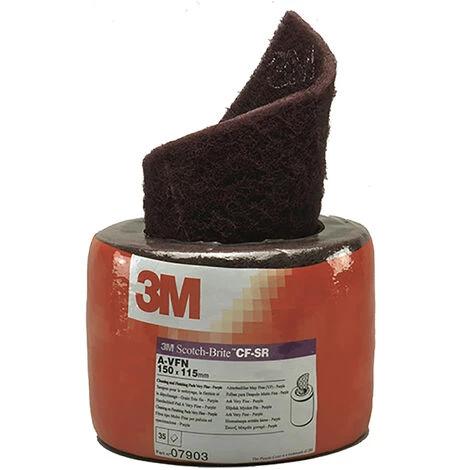 PrĂ©-dĂ©coupez le tampon Scotch-Brite™ sur un rouleau CF-SR. Les rouleaux prĂ©-coupĂ©s Scotch-Brite™ sont minces, durs et hautement conformables, ce qui les rend idĂ©ales pour les zones difficiles Ă atteindre. Fournis sur un rouleau central avec des sections faciles Ă dĂ©chirer. Le MX-SR est fourni comme un rouleau de plus de 4 mètres de sections prĂ©-coupĂ©es. Le meilleur choix pour la prĂ©paration de surface Ă la main. Les rouleaux non tissĂ©s aux arĂŞtes vives sont très flexibles et façonnables pour le nettoyage ou une finition impeccable. Les feuilles Scotch-Brite™ sont un excellent remplacement de la laine d’acier tout en Ă©liminant les contaminants. Plus agressif. La gamme de qualitĂ© de coupe agressive est violette : cet abrasif, tout en Ă©tant extrĂŞmement façonnable, est excellent pour le ponçage des prĂ©parations de peinture sur le bois, le mĂ©tal et les plastiques. Il fonctionne très bien pour le ponçage de nouveaux panneaux, montants de porte et zones sous le capot. Le rouleau abrasif est idĂ©al pour le ponçage avant l’apprĂŞt et la peinture pour une bonne adhĂ©sion mĂ©canique. Moins agressif. Les draps Scotch-Brite™ gris sont parfaits pour la prĂ©paration des couches de couleur et du mĂ©lange simple. Ce rouleau abrasif est utilisĂ© pour les Ă©raflures lĂ©gères et le ponçage pour les applications de peinture et d’apprĂŞt. CaractĂ©ristiques et avantages. Une bonne alternative Ă la laine d’acier, aux brosses mĂ©talliques, au papier de verre et Ă d’autres produits non tissĂ©s pour les tâches de nettoyage ou de finition AdaptĂ© pour une utilisation sur le bois, le mĂ©tal, les plastiques, la cĂ©ramique, la porcelaine, Verre, caoutchouc ou composites Le patin rĂ©utilisable rĂ©siste Ă la dĂ©chirure, Ă l’Ă©clatement, au dĂ©chiquetage, au chargement et ne rouillera jamais, fournissant une longue durĂ©e de vie utile Peut ĂŞtre pliĂ©, empilĂ© ou enroulĂ© pour un nettoyage ou un conditionnement efficace sur des surfaces plates, irrĂ©gulières ou profilĂ©es. FAQ. Que sont les abrasifs non tissĂ©s ?. Les abrasifs non tissĂ©s prĂ©sentent un grain abrasif liĂ© Ă des fibres de nylon flexible, qui fournissent une finition uniforme contrĂ´lĂ©e. La structure en toile ouverte fournit et assure une vitesse de coupe rĂ©gulière. Pourquoi choisir 3M ?. 3M est l’un des principaux innovateurs en matière de technologies abrasives, qui Ă©voluent constamment pour fournir des solutions idĂ©ales aux applications industrielles et commerciales. Avec 3M, vous pouvez ĂŞtre assurĂ© d’une large sĂ©lection de produits de qualitĂ©.