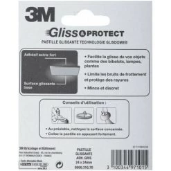 3M Lot De 9 Pastilles Glissantes Adhésives Glisdome Gris 24mmX24mm